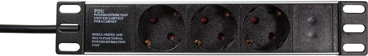 Logilink - Stromverteilungseinheit (Rack - einbaufähig) - Wechselstrom 230 V - 3500 Watt - Eingabe, Eingang CEE 7/7 - Ausgangsanschlüsse: 3 (Stromversorgung) - 1U - 25.4 cm (10") - Schwarz, RAL 9005 (PDU3B01)