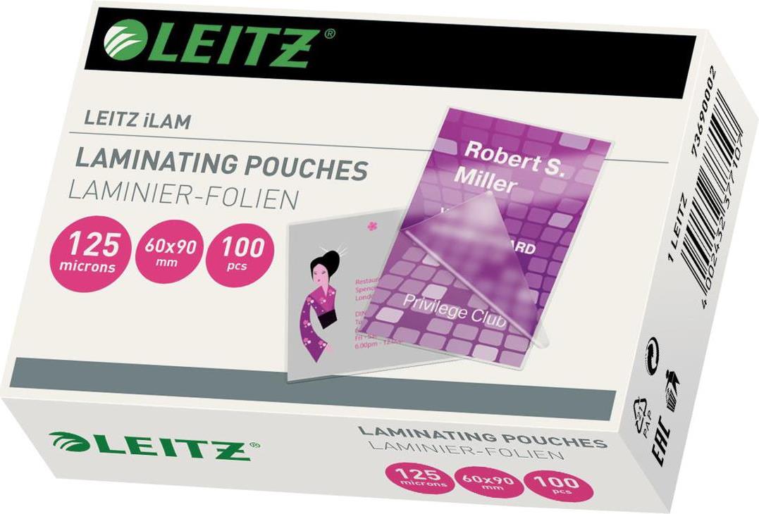 Leitz Folientasche 125 Micron, für Visitenkarten, 100 Stück (7369-00-02)