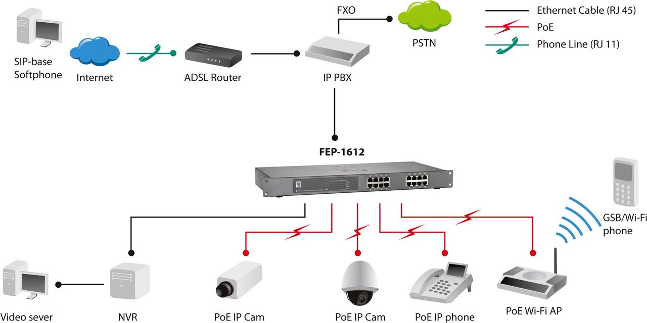 Der LevelOne FEP-1612 verfügt über 16 x 10/100Mbps Fast Ethernet Ports mit IEEE 802.3at/af PoE Schnittstellen. Er unterstützt MDI/MDI-X Funktion an jedem Port und Power over Ethernet, um kompatibel mit IEEE 802.3af oder 802.3at die Stromversorgung für entfernte Geräte zu ermöglichen.