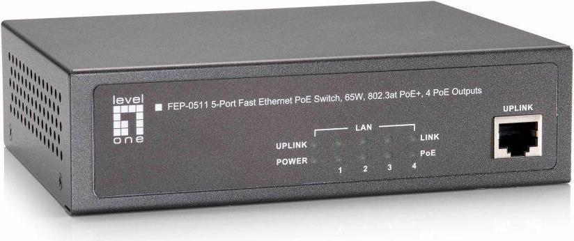 5-Port Fast Ethernet PoE+ Switch, 4x FE PoE+ (65W) Hersteller: LEVELONE (FEP-0511)