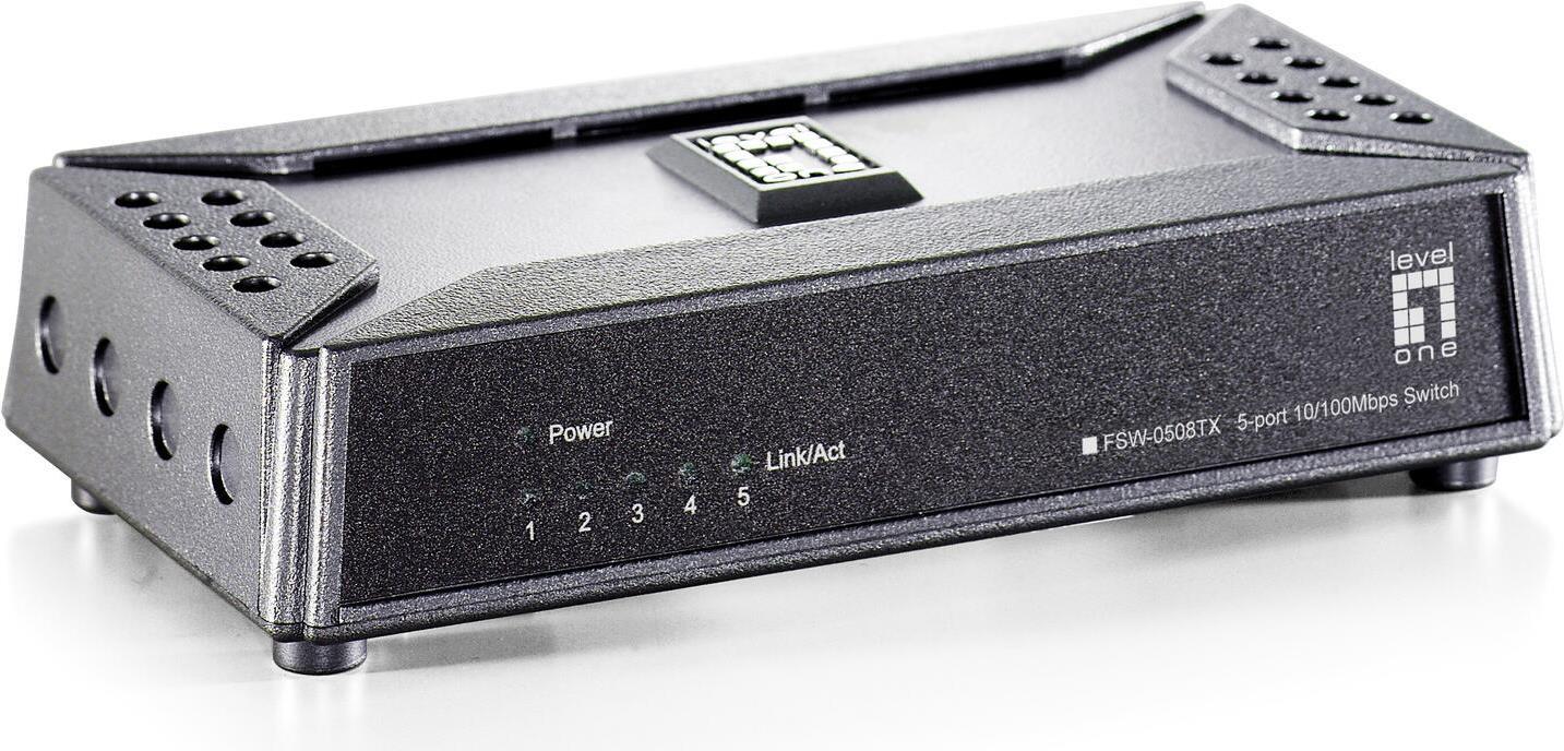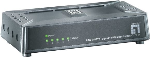 Der LevelOne FSW-0508TX 5-Port Fast Ethernet Switch kombiniert effiziente Technologie mit einem einzigartigen Design. Dieser Switch ist mit 5 x 10/100Mbps Ports ausgestattet, die mit hoher Bandbreite von bis zu 200Mbps einen störungsfreien Datentransfer und Zugriff auf den Server auch für Workgroups ermöglichen.