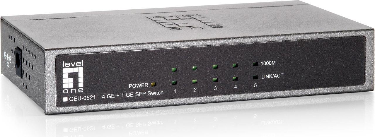 LevelOne GEU-0521 - Switch - 4 x 10/100/1000 + 1 x Gigabit SFP - Desktop, wandmontierbar (GEU-0521)