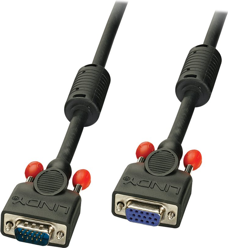Lindy - VGA-Verlängerungskabel - HD-15 (M) - HD-15 (W) - 2,0m - geformt, Flügelschrauben - Schwarz (36393)