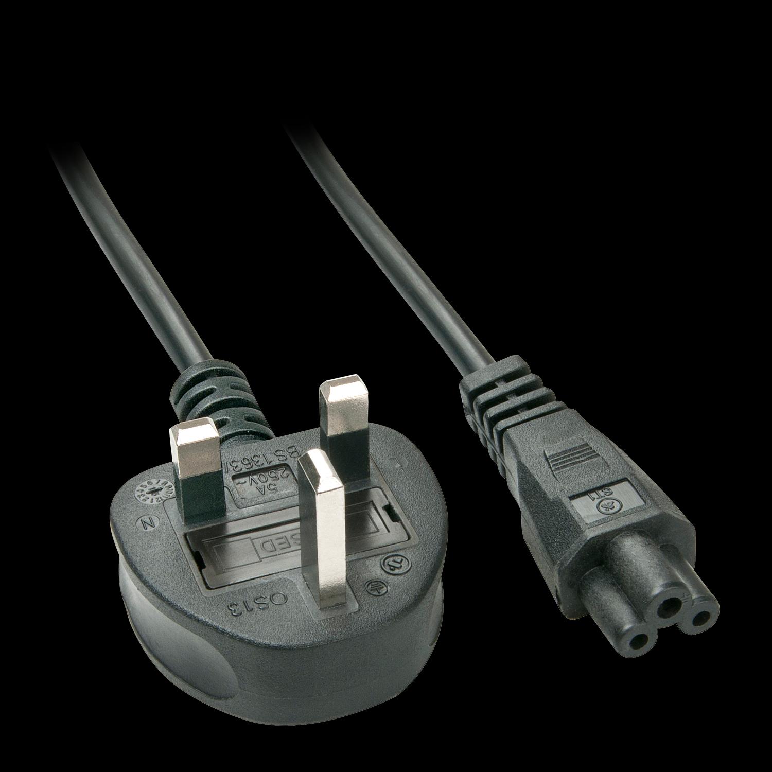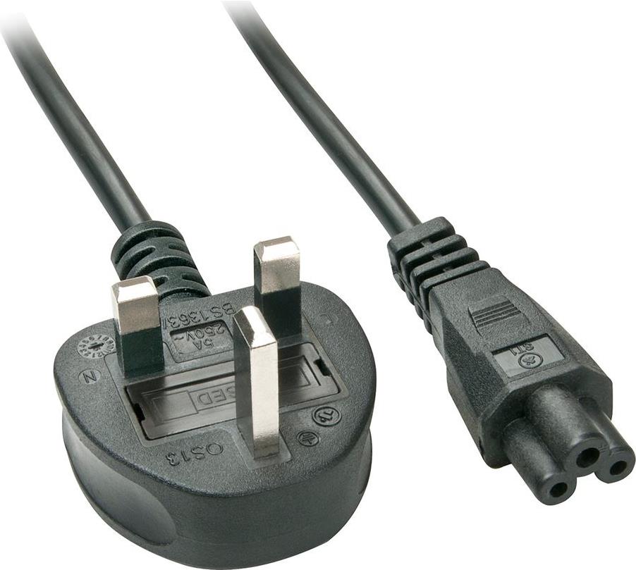 Lindy - Stromkabel (250 VAC, 5 A) - BS 1363 (M) - bis - IEC 320 EN 60320 C5 - 2,0m - geformt - Schwarz - Großbritannien und Nordirland (30409)