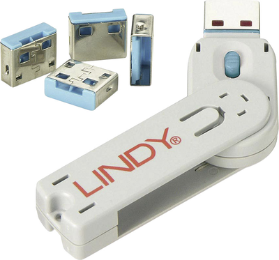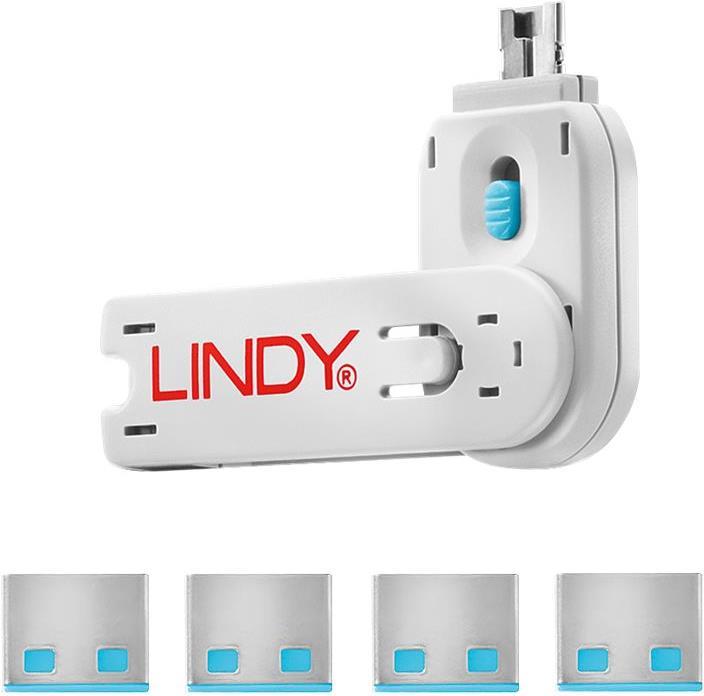 • Lindy USB Typ A Port Schloss, blau Vier Port Schlösser für USB mit Schlüssel sind die ideale Lösung, um schnell USB Ports gegen unberechtigten Zugriff zu sichern (40452)