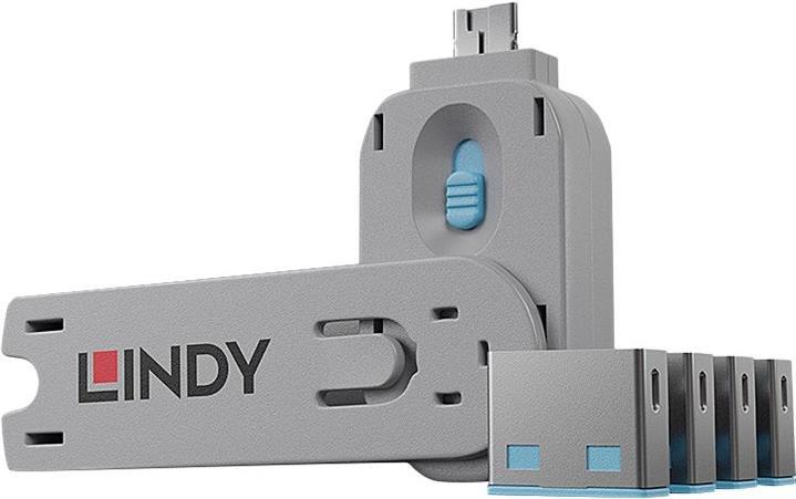 Lindy USB Typ A Port Schloss, blau Vier Port Schlösser für USB mit Schlüssel sind die ideale Lösung, um schnell USB Ports gegen unberechtigten Zugriff zu sichern (40452)