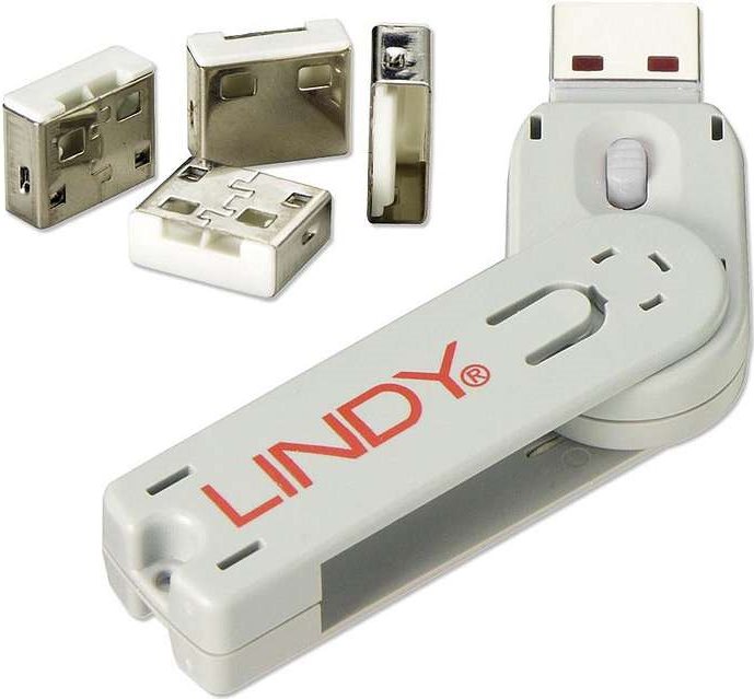 • Lindy USB Typ A Port Schloss, weiß Vier Port Schlösser für USB mit Schlüssel sind die ideale Lösung, um schnell USB Ports gegen unberechtigten Zugriff zu sichern (40454)