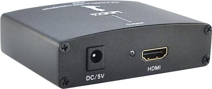 Konvertiert und kombiniert VGA-Monitorsignal mit einem analogen Audiosignal zu einem HDMI-Signal.
