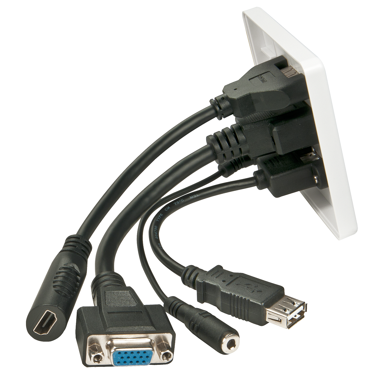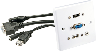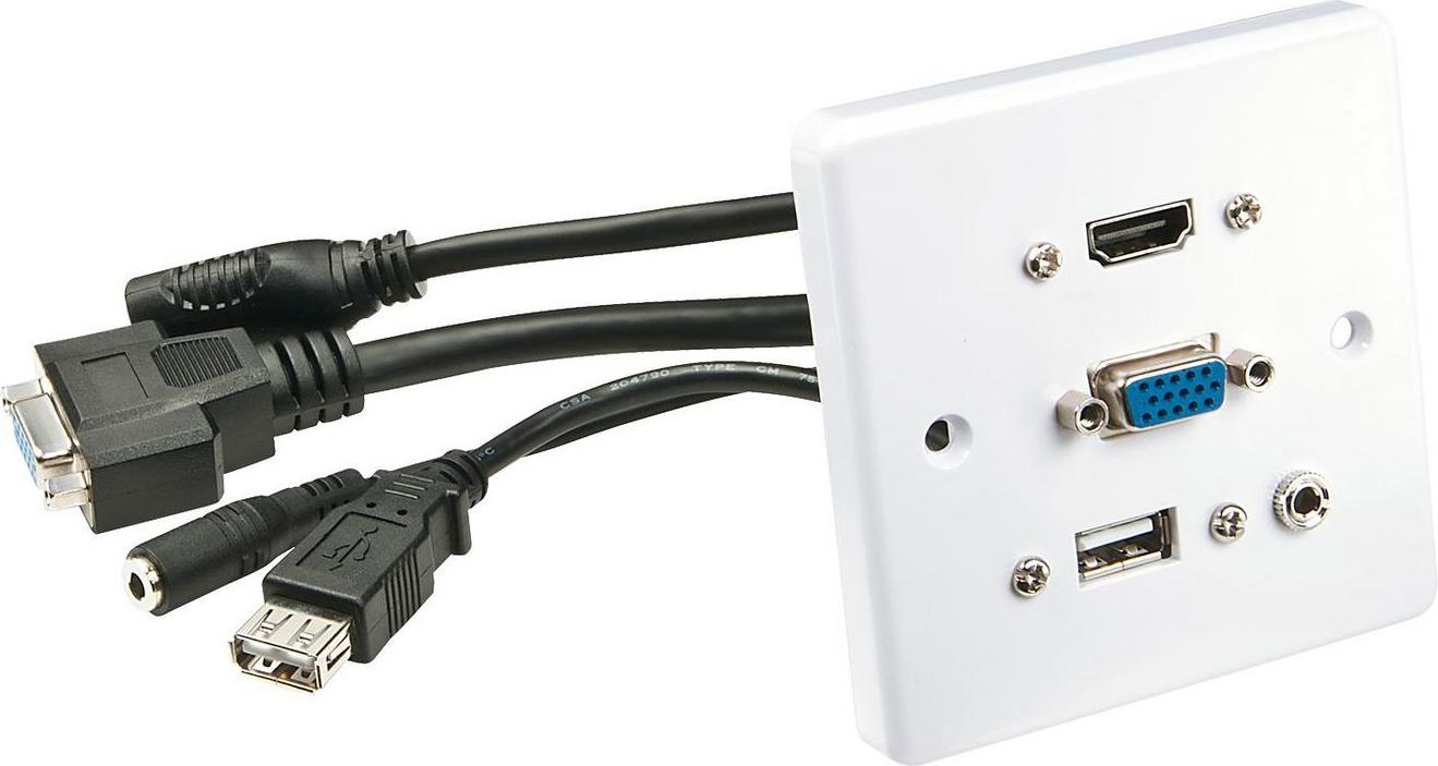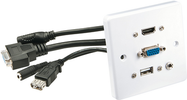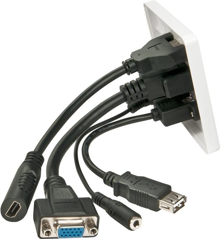 Diese spezielle AV-Wandanschlussplatte bietet einen praktischen Anschluss für in der Wand in Kabelkanälen verlegte AV-Kabel