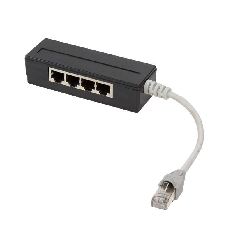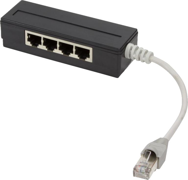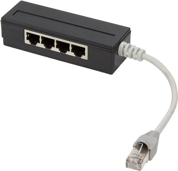 Dieser geschirmter modulare Verteiler ermöglicht den Anschluss von bis zu 4 weiteren Endgeräten an einen LAN oder Telefonanschluss.