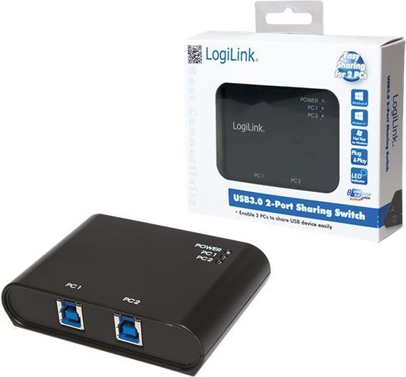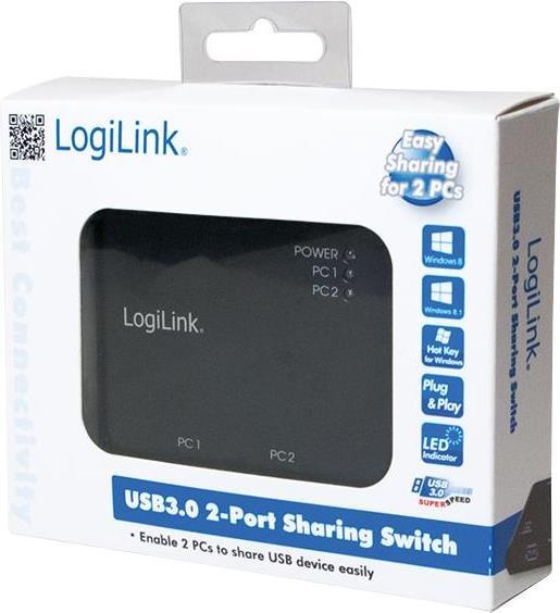 LogiLink USB 3.0 Sharing Switch - USB-Umschalter für die gemeinsame Nutzung von Peripheriegeräten - 2 Anschlüsse |