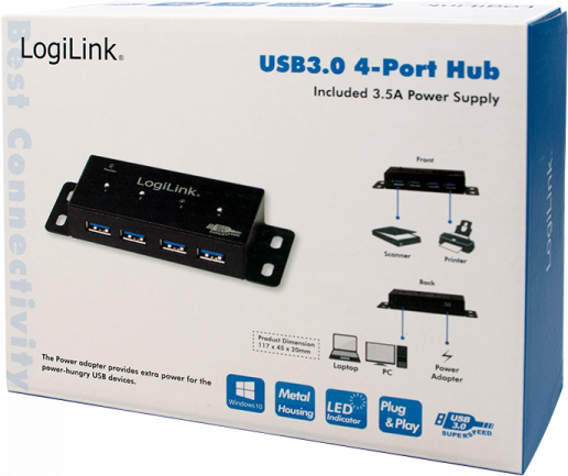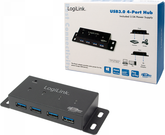 LogiLink USB 3.0 HUB, 4-Port, Metall Gehäuse incl. Netzteil (UA0149)