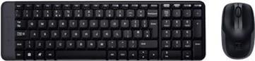 Die Logitech Wireless Combo MK220 ist ein kompaktes kabelloses Tastatur-Maus-Set mit all den Tasten, die Sie brauchen. Selbst in Umgebungen mit starkem WLAN-Verkehr gewährleistet die kabellose Logitech Advanced 2,4-GHz-Technologie eine zuverlässige Verbindung nahezu ohne Verzögerungen oder Ausfälle. Dank einer langen Batterielebensdauer mit automatischem Standby-Modus kommen Sie monatelang ohne lästige Batteriewechsel aus. Mit seinem eleganten, minimalistischen Design passt das Set außerdem perfekt zu Ihrer Einrichtung. Und dank der einfachen Einrichtung ganz ohne Software können Sie im Handumdrehen twittern, über Instant Messenger chatten oder Blogeinträge schreiben.