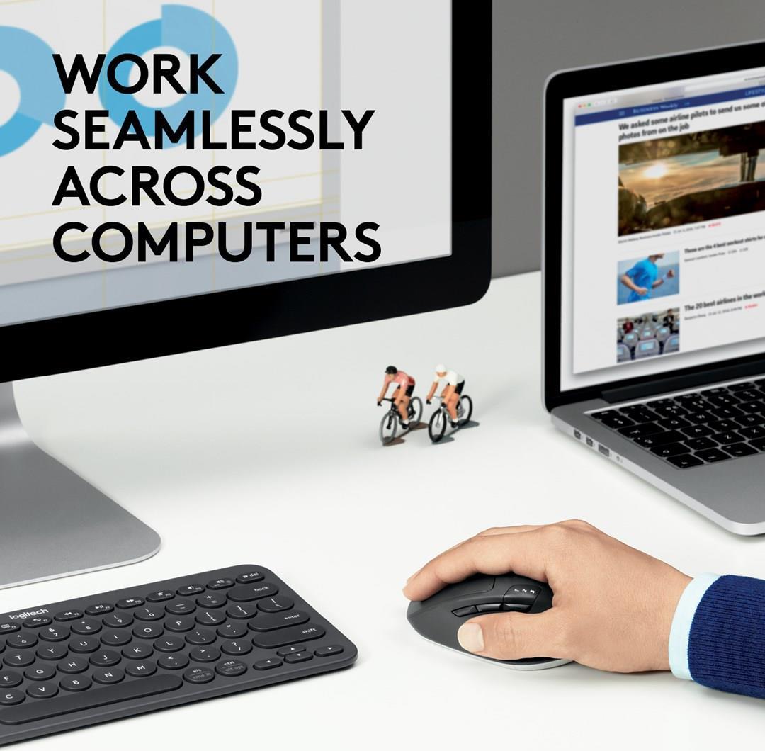 Mit der M720 Triathlon-Maus arbeiten Sie auch bei Verwendung mehrerer Geräte produktiv. Sie wechseln nahtlos zwischen drei Computern und durchfliegen Dokumente und Webseiten durch hyperschnelles Scrollen. Dank der hohen Energieeffizienz können Sie diese Bluetooth - und Unifying-Maus mit einer einzigen Batterie vom Typ AA 24 Monate lang nutzen. All diese großartigen Eigenschaften sind in einer mittelgroßen Maus verpackt, die bequem in Ihrer Hand liegt.