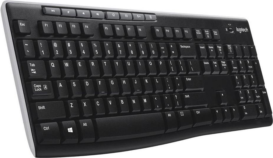 Eine schnurlose Tastatur von Logitech in voller Standard-Größe. Somit kann man gut fehlerfrei Tippen.