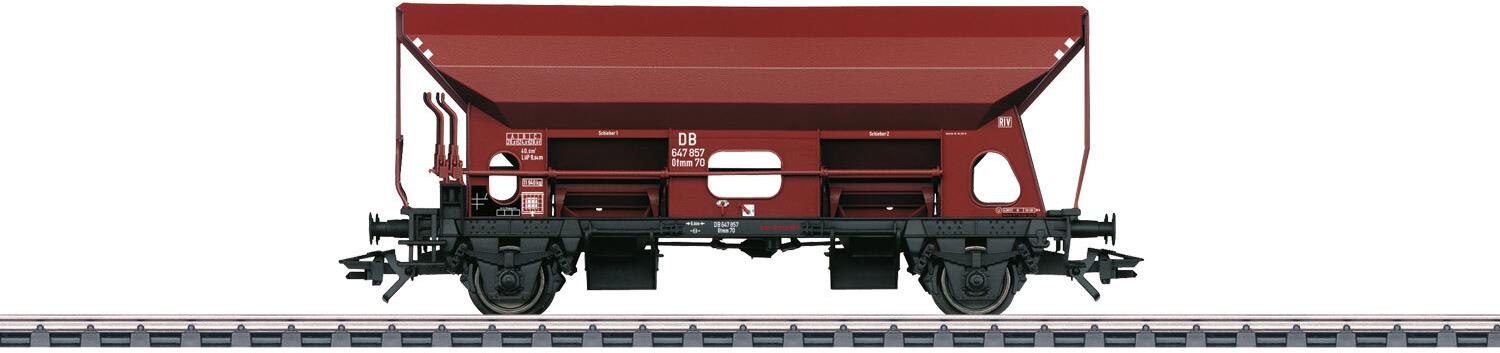 Vorbild: Zweiachsiger offener Selbstentladewagen Bauart Otmm 70 der Deutschen Bundesbahn (DB), mit Bühne und Aufstiegsleitern. Betriebszustand um ...
