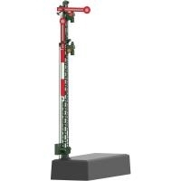 Form-Signal der DBEinstellbarer ServoantriebMit Digitaldecoder, analog schaltbarUnter- bzw. OberflurbetriebDie neu konstruierten Formsignale besitzen die Digitalformate mfx, Motorola und DCC. Der Antrieb erfolgt mittels Servo-Antrieben. Die Geschwindigkeit der Flügelbewegung ist frei programmierbar. Die konstante Lichtquelle wird mittels LED erzeugt. Zur vorbildlichen Darstellung liegt ein Unterflurmontagekit bei.Konventionell über das Stellpult 72760 (Best.-Nr. 100 52 17) und im Digital-System über die CS II, MS II, CS I oder Keyboard 6040 schaltbar.Ausstattung: Mit 2 ungekoppelten Flügeln und durchbrochenem Gittermast. Wechsel von Rot auf Grün oder Rot auf Grün/Gelb.Technische Daten: Altersklasse: ab 15 JahreAusführung: GittermastBauart: Hauptsignal, 3begriffigBaugröße: H0