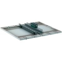 Schiebebühne in neuer realistischer Farbgebung. Grundplatte mit 2 Zufahrtsgleisen und 8 Abstellgleisen. Gleisanschlüsse für Märklin-Metallgleise. Mit den entsprechenden Übergangsgleisen natürlich auch für C-Gleise ...