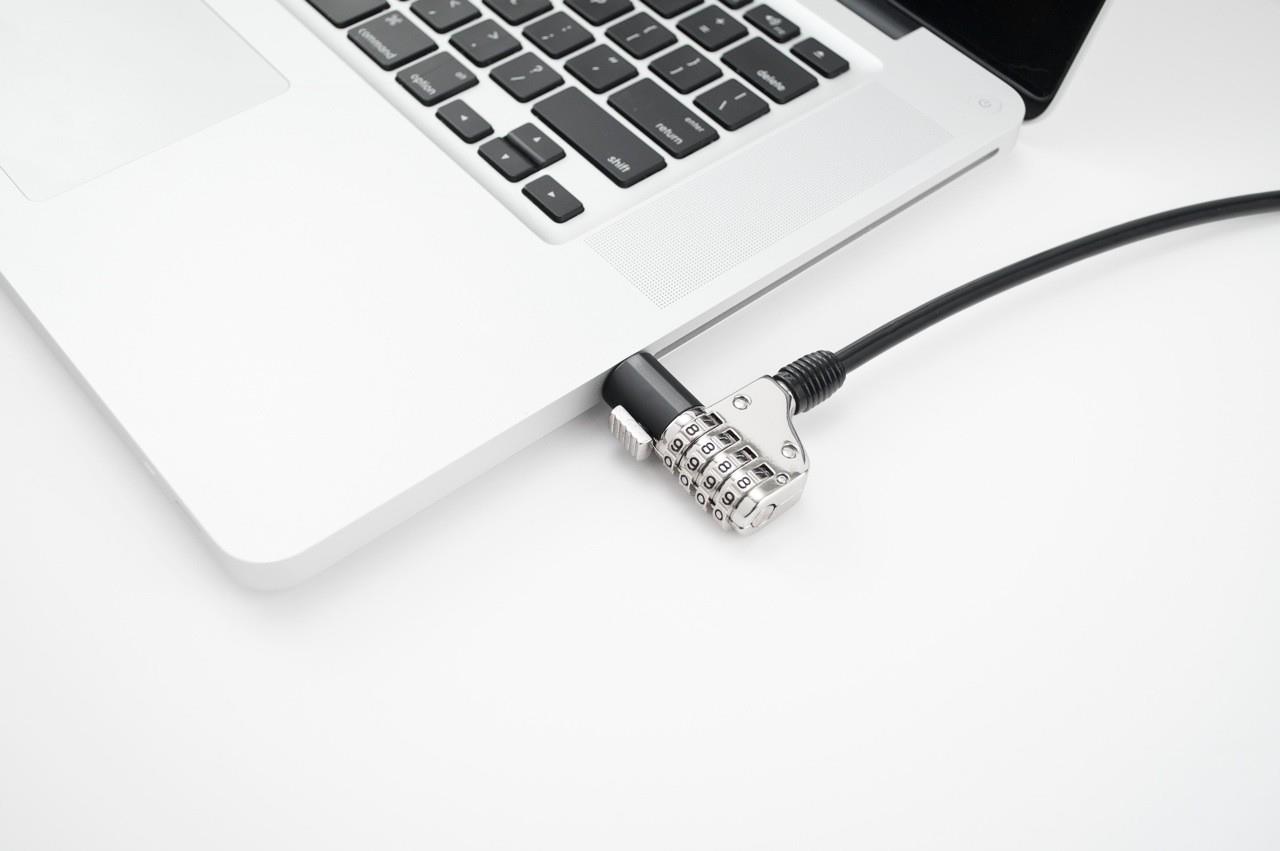 Unser universelles Sicherungskabel mit Zahlenschloss gehört zu unseren Bestsellern. Es ist für alle Laptops, Notebooks, Netbooks, wie auch auch für Apple MacBooks, MacBook Pro, MacBook Air und iMacs einsetzbar. Das Kabel kann auch an anderen Compulocks Sicherheitsprodukten wie für Apple Tablets und Notebooks angebracht werden. Zudem können auch zusätzliche Kabel am Schloss angebracht werden. Das Kabel enthält eine Schlaufe und kann somit in sehr vielen Umgebungen eingesetzt werden.