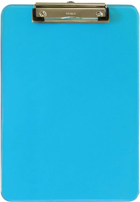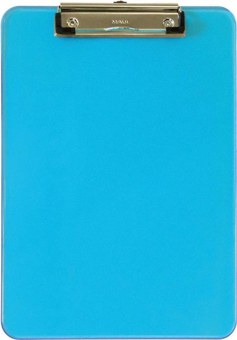 MAUL Klemmbrett MAULneon, DIN A4, transparent-blau aus Kunststoff, flache, vernickelte Bügelklemme - 1 Stück (2340631)