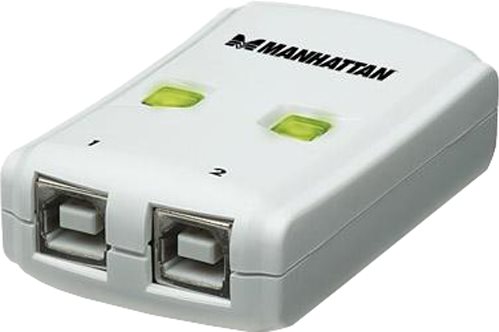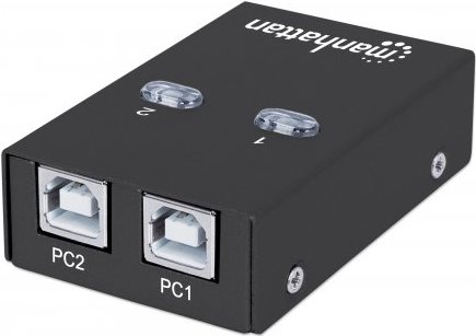 Der Manhattan 2-Port USB 2.0-Umschalter ermöglicht das komfortable Teilen eines USB-Peripheriegeräts zwischen zwei PCs oder Notebooks - besonders praktisch für die gemeinsame Nutzung eines Druckers, Scanners, einer externen Festplatte und mehr. Das Umschalten erfolgt ganz einfach entweder per Bildschirmmenü oder direkt mit den Tasten am Umschalter selbst. Per Plug&Play ist die Installation im Handumdrehen ausgeführt. Die notwendigen USB-Kabel sind im Lieferumfang enthalten, Treiber oder ein externes Netzteil werden nicht benötigt.
