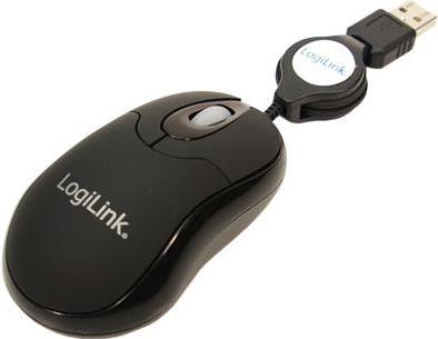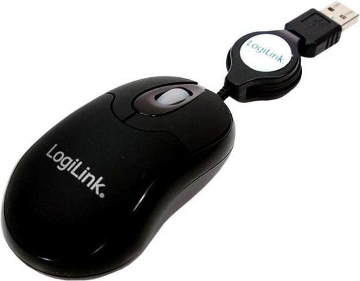 LogiLink Mini with retractable cable - Maus - rechts- und linkshändig - optisch - 3 Tasten - verkabelt - USB
