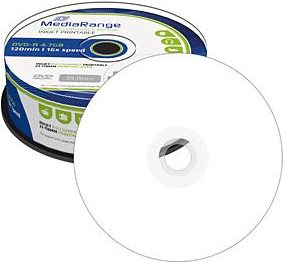 MediaRange Inkjet Fullsurface-Printable - 25 x DVD-R - 4,7GB 16x - mit Tintenstrahldrucker bedruckbare Oberfläche - Spindel (MR407)
