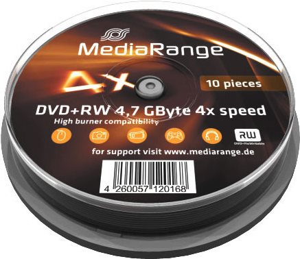 MediaRange - 10 x DVD+RW - 4,7GB (120 Min.) 4x - Spindel (MR451)