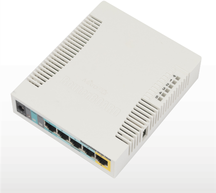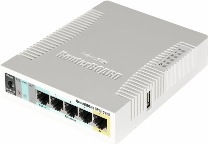 Das RB951Ui-2HnD ist ein SOHO AP mit der Atheros CPU und damit mit mehr Prozessorleistung Er besitzt fünf Ethernet-Ports einen USB-Port und eine 2,4 GHz Antenne mit einer Leistung von 1000 mW 802.11 b/g/n - WLAN AP Mit seiner 600 MHz CPU, 128 MB RAM und POE Funktion auf Port 5, kann dieses Gerät andere PoE fähige Geräte mit der selben Spannung versorgen.