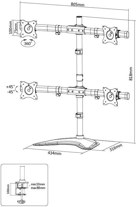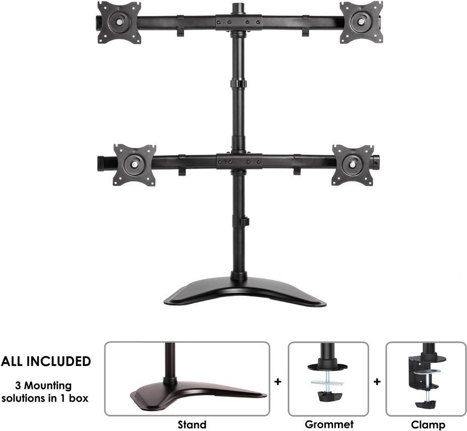 • Neomounts NM-D335D4BLACK 4fach Monitor-Tischhalterung 25,4 cm (10) - 68,6 cm (27) Neigbar, Schwenkbar Schwarz