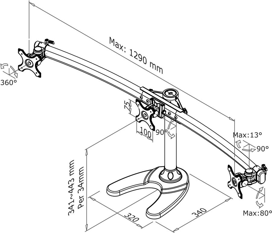 • Neomounts FPMA-D700DD3 3fach Monitor-Standfuß 25,4 cm (10) - 68,6 cm (27) Schwarz Höhenverstellbar, Schwenkbar, Neigbar