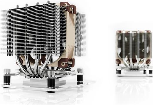 Der NH-D9L ist ein Premium-Kühler in Doppelturm-Bauweise, der bei einer Gesamthöhe von nur 110mm hervorragende Silent-Kühlleistung bietet. Die vergleichsweise geringe Bauhöhe (15mm weniger als klassische 9cm Kühler wie der NH-U9S) garantiert dabei nicht nur volle 3U-Kompatibilität, sondern macht den NH-D9L zugleich zu einer idealen Lösung für kompakte HTPC und Small Form Factor Gehäuse, bei denen der Luftstrom parallel zum Mainboard verläuft. Dank seiner Grundfläche von 95x95mm hängt der NH-D9L auf allen Intel und den meisten AMD basierten ITX Mainboards nicht über die Speicherbänke oder PCIe Slots. Für hervorragende Laufruhe sorgt der der mitgelieferte NF-A9 Premium-Lüfter, dessen Geschwindigkeit vollautomatisch über PWM geregelt werden kann.