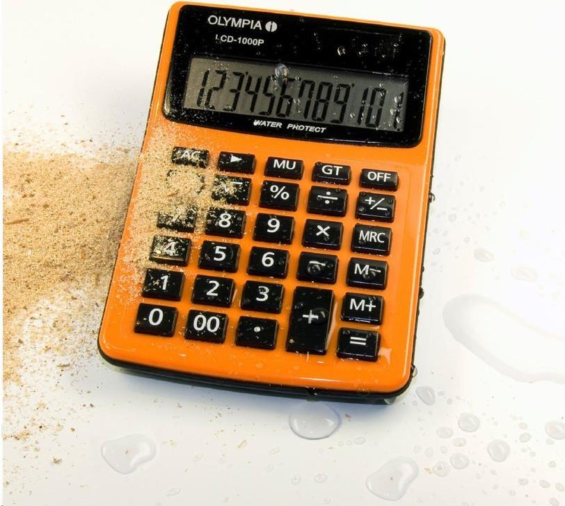 OLYMPIA LCD 1000P Taschenrechner orange 1zeilig 12Stellen-Display Wurzel Prozent GT Speicherfunktion Batterie-Solar wasserdicht (4685)