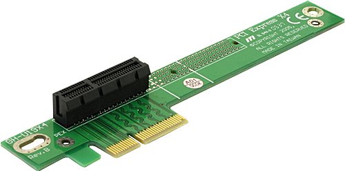 Mit dieser Riser Karte können Sie Ihre PCI Express x4 Karte im 90°-Winkel an den PCI Express Slot Ihres Mainboards anschließen. Diese Art der horizontalen Installation ist in 1HE Computergehäusen notwendig, da eine vertikale Installation aus Platzgründen nicht möglich ist.