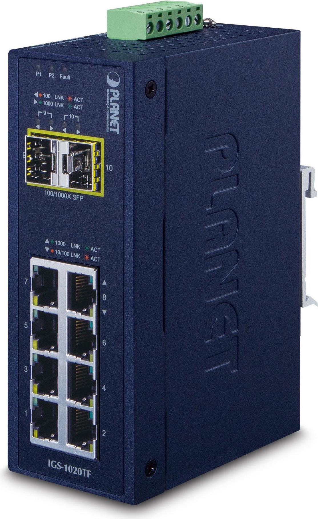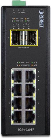 PLANET IGS-1020TF - Switch - nicht verwaltet - 8 x 10/100/1000 + 2 x Gigabit SFP - an DIN-Schiene montierbar - AC 24 V / DC 12 - 48 V