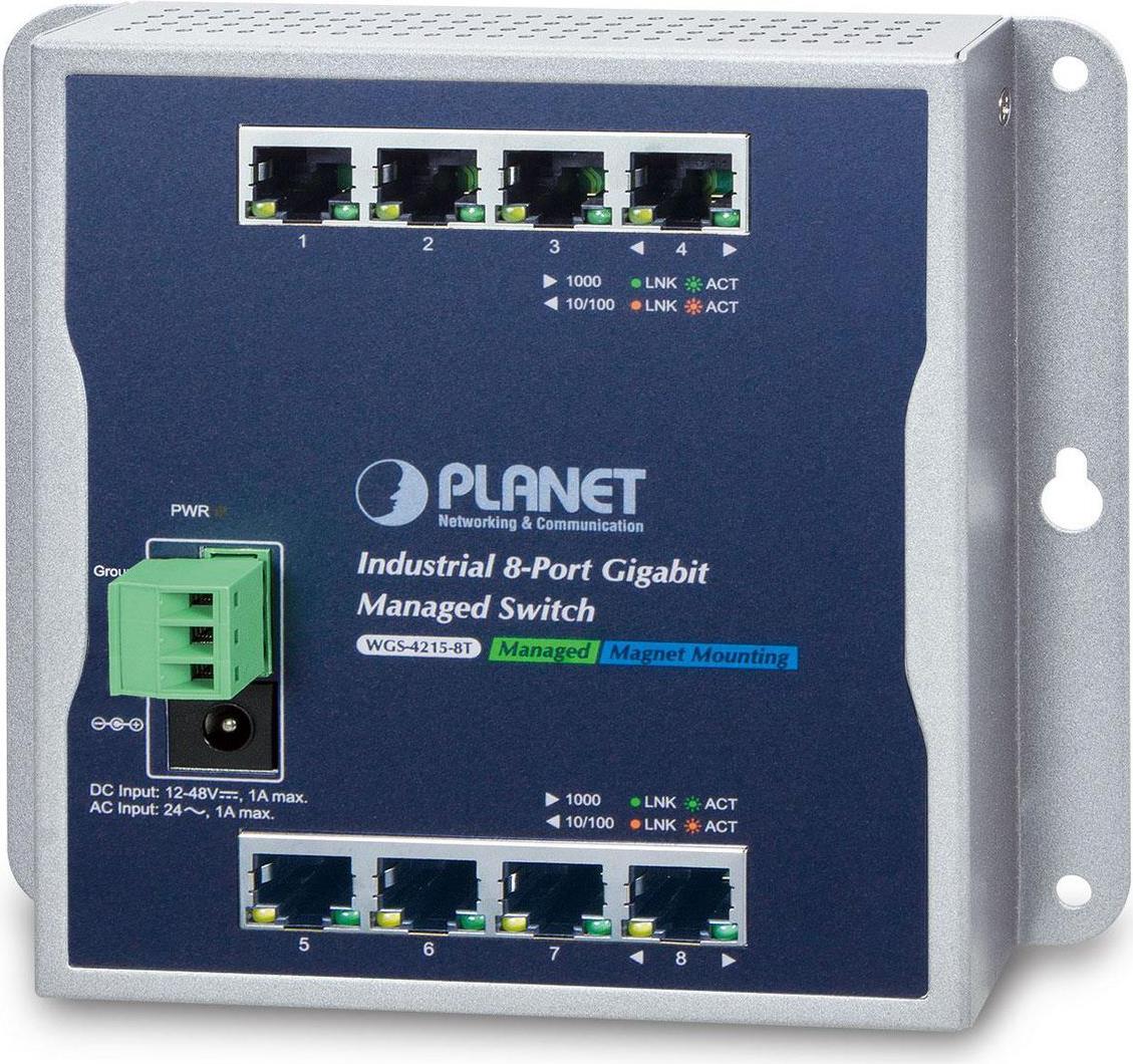 PLANET 8-Port Wall-mt Managed Switch PLANET Industrial 8-Port 10/100/1000T Wall-mount Managed Switch (-40~75 degrees C) (WGS-4215-8T)