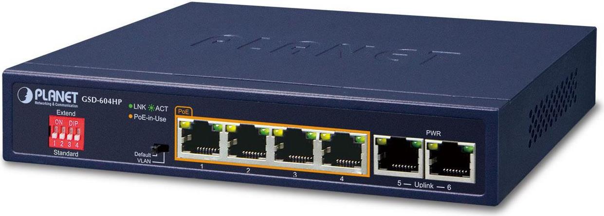 | Produktbeschreibung | PLANET GSD-604HP - Switch - 6 Anschlüsse |