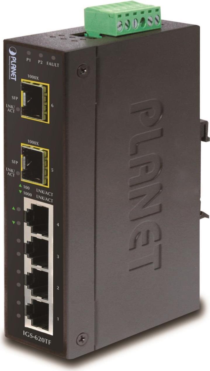 | Produktbeschreibung | PLANET IGS-620TF - Switch - 6 Anschlüsse - nicht verwaltet - an DIN-Schiene montierbar |
