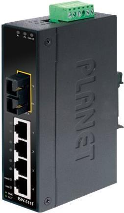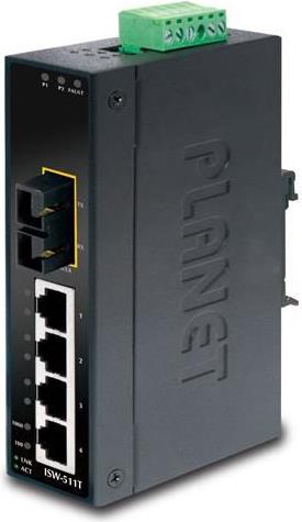 PLANET ISW-511T - Switch - 4 x 10/100 + 1 x 100Base-FX - an DIN-Schiene montierbar, wandmontierbar - Gleichstrom (ISW-511T)