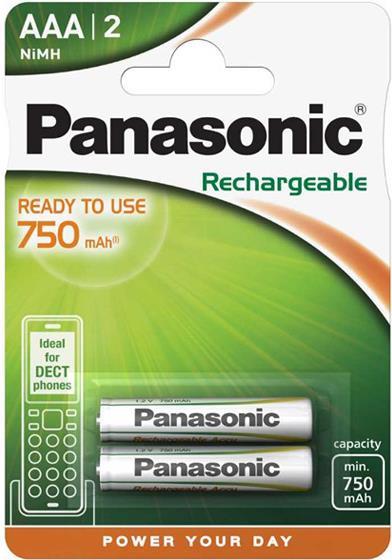 Panasonic Akku P03P AAA 750 mAh, NiMH, 2er Blister Mikro, ideal für DECT Geräte, P03P/2B, Micro (P03P/2B750DECT)