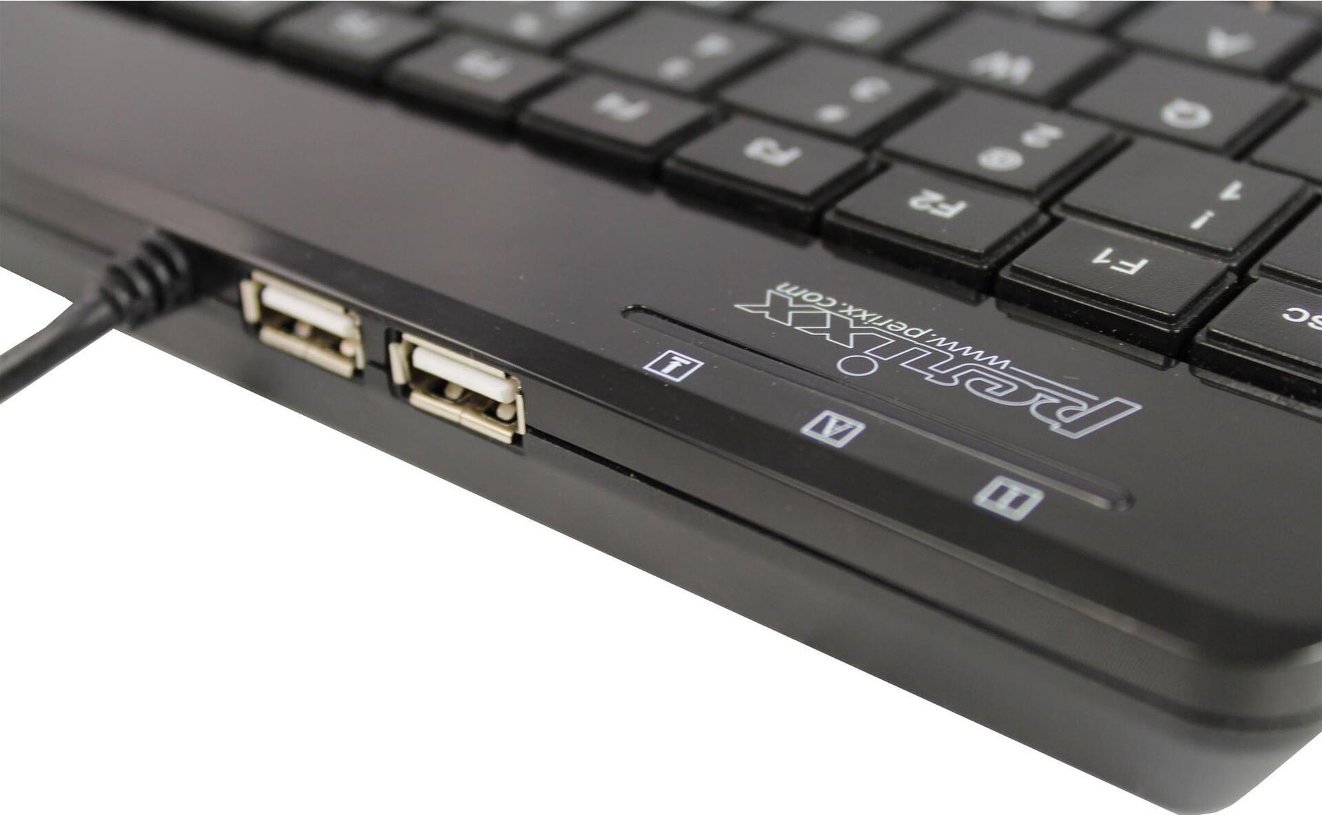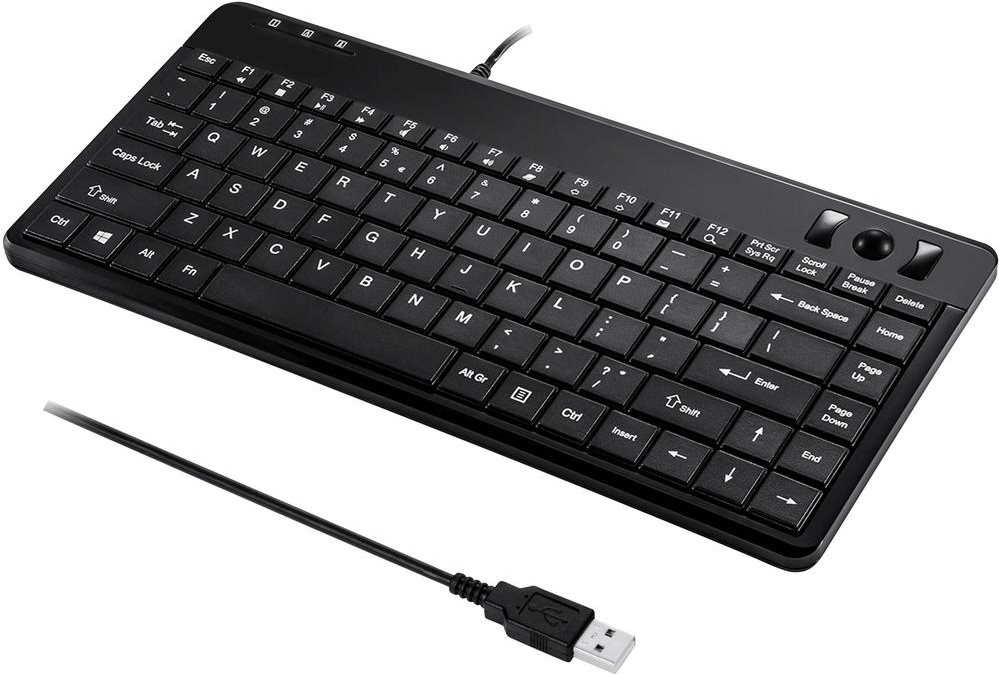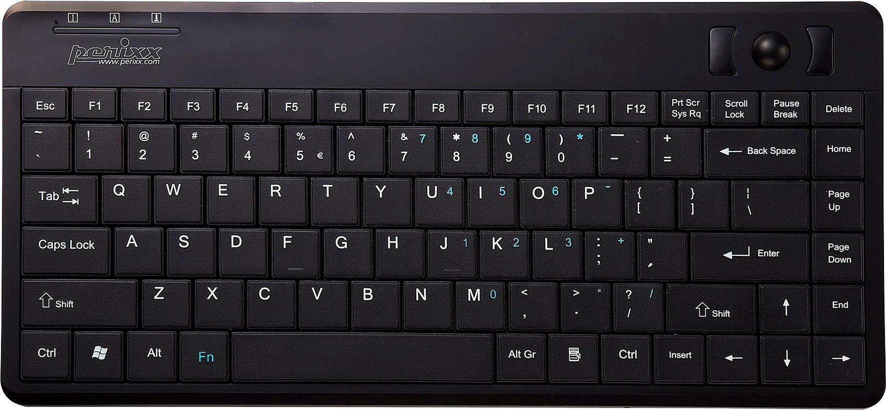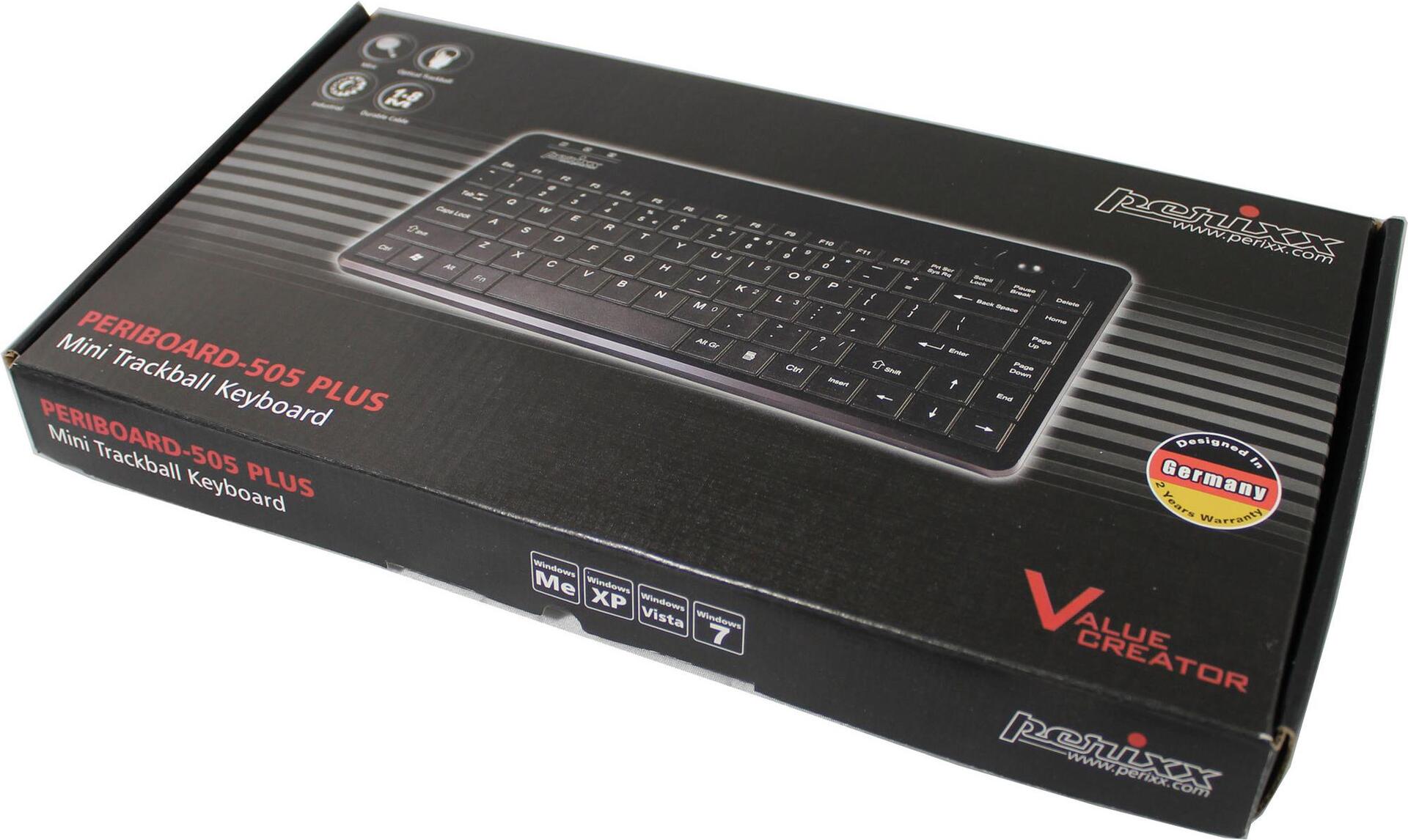 Perixx Trackball-Tastatur Periboard 505H Plus, USB, schwarz Günstige Mini-Tastatur mit integriertem optischem Trackball (PERIBOARD-505H Plus)