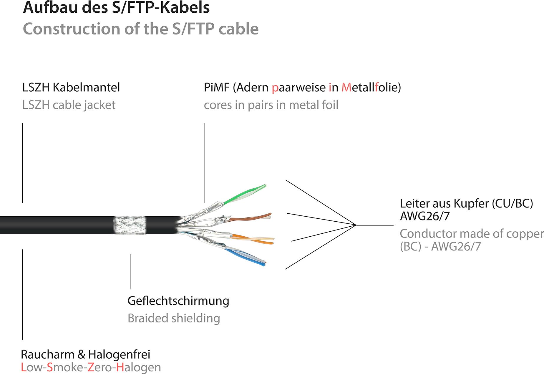 RJ45 Patchkabel mitCat.7 Rohkabel und Rastnasenschutz (RNS®), S/FTP, PiMF, halogenfrei, 600MHz, OFC, schwarz, 2m, Good Connections® (8070R-020S)