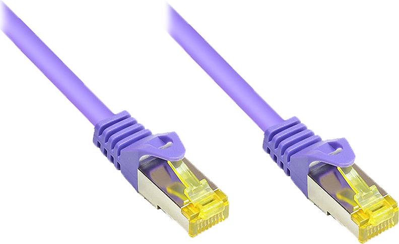 RJ45 Patchkabel mitCat.7 Rohkabel und Rastnasenschutz (RNS®), S/FTP, PiMF, halogenfrei, 600MHz, OFC, violett, 30m, Good Connections® (8070R-300V)