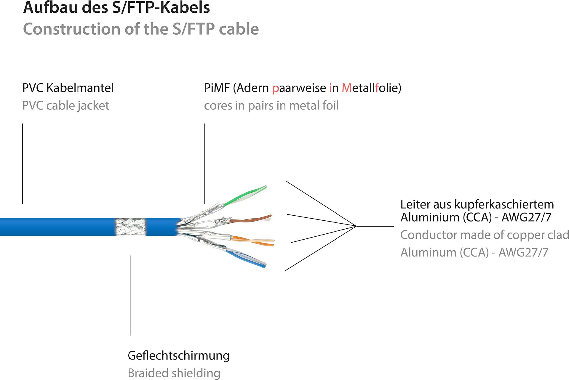 RNS Patchkabel von Good Connections mit effektivem Rastnasenschutz (RNS). Verhindert das Wegknicken der Rastnase auf dem Patchkabelstecker. So gehören abgebrochene Rastnasen der Vergangenheit an!Produkttext[/head]Beschreibung:2x RJ45 SteckerDoppelt geschirmtes Twisted Pair KabelAderpaarschirmung: PIMF (Paare in Metall Folie)Gesamtschirmung: GeflechtPaarfolge nach EIA/TIA 568mit angespritzter KnickschutztülleLängenangabe auf der Tüllemit vergoldeten KontaktflächenSlimline Knickschutztülle, geeignet für alle PatchfelderTechnische Details:Länge 0,15 mFarbe blauSchirmungsmaß S/FTP (PIMF)Innenleiter 4x2xAWG 28/7 CUIsolierung LSOH/LSZH Halogen FreeStandard CAT 6 (250MHz)[head]Hauptmerkmale