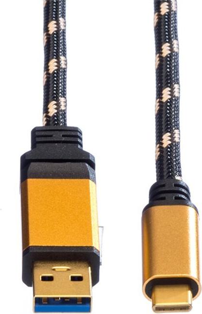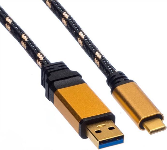 Roline Gold - USB-Kabel - USB Typ A (M) bis USB-C (M) - USB 3.1 - 5 V - 900 mA - 1 m - Schwarz/Gold