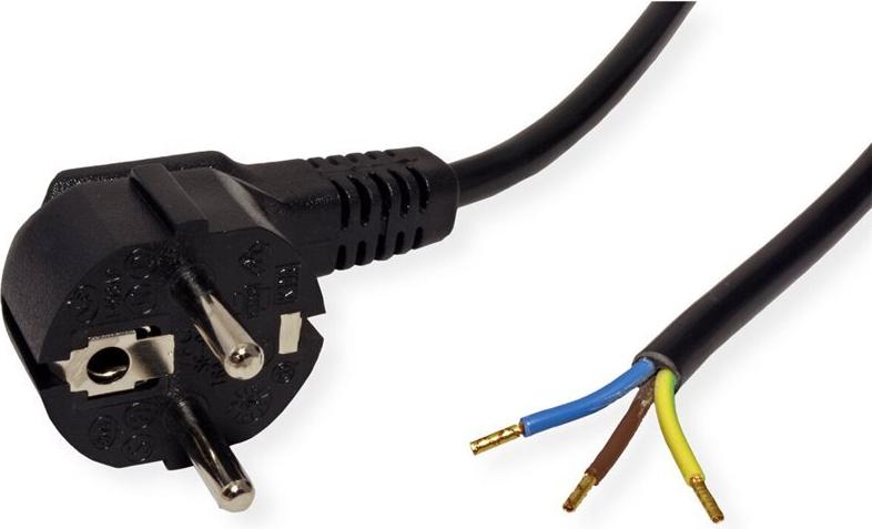 ROLINE - Stromkabel - CEE 7/7 (SCHUKO) (M) bis ohne Stecker - Wechselstrom 230 V - 16 A - 3 m - Schwarz (19.08.1111)