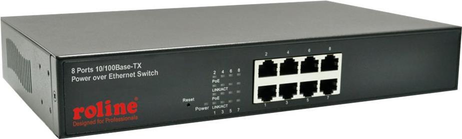 ROLINE PoE Fast Ethernet Switch, 8 Port (8x PoE), 48,30cm (19") Einbau (21.13.1191)