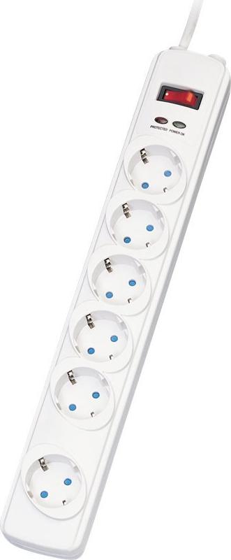 Kunststoff Steckdosenleiste mit Berührungsschutz und Überspannungsschutz Überspannungsschutz mit EMI/RFI Filter; Noise Filter: bis 40dB Schlagfester Kunststoff Schalter, 1polig, beleuchtet Dosen in 45° mit erhöhtem Berührungsschutz Anzeige-LED für Schutz und für Erdung Max. Belastung 10A 230V 10A Sicherung rücksetzbar Leitung: 1,8m HO5VV-F 3G 1,0mm.