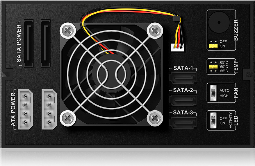 Diese drei Festplatten-Backplanes haben sich im richtig harten Einsatz im Server bewährt. Die Aluminiumteile leiten die Wärme ab, der 80-mm-Lüfter arbeitet zuverlässig und leise. Sollte es im Gehäuse doch einmal zu heiß werden, warnen akustische und optische Signale. Alle mechanischen Teile sind für höchste Belastungen ausgelegt. Die Schubladen und ihre Verriegelung sind extrem passgenau und gleiten widerstandslos. Die Aluminiumteile sind elektrolytisch versiegelt.