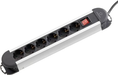 6fach Steckdosenleiste mit Alu-ProfilMit KinderschutzVerwindungsstabile Leiste mit 6 Steckdosentöpfen und beleuchtetem rotem Schalter. Über die Enden ist eine Befestigung z.B. an der Wand möglich. Technische Daten: Anschluss-Leistung: 3680 WEinsatzort: InnenbereichFarbe: Schwarz-SilberKabellänge: 1.40 mKabeltyp: H05VV-F 3G 1,5 mm²Kinderschutz: JaMaterial (LOV): AluminiumMontageart: MontagelöcherNetzstecker-Typ: SchutzkontaktProduktabmessung, Breite: 70 mmProduktabmessung, Höhe: 50 mmProduktabmessung, Länge: 430 mmSteckdosen-Anzahl: 6Steckdosenleisten-Besonderheiten: Kinderschutz, mit SchalterSteckdosenleisten-Typ (Kategorisierung): Steckdosenleiste mit SchalterWeitere technische Daten: 2poliger Schalter